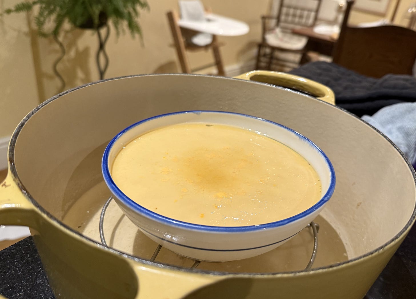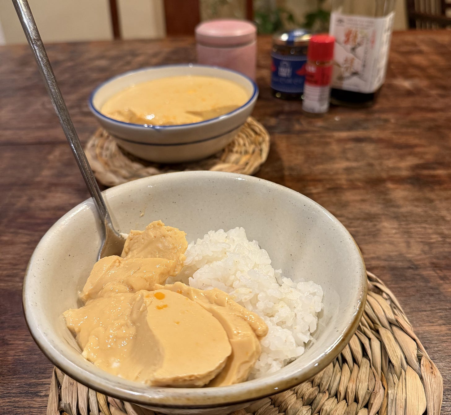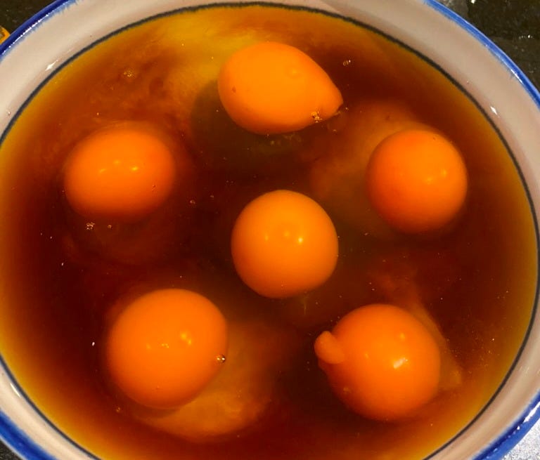 One question is whether to steam the eggs in one bigger bowl or several smaller ones. I do both. It depends on what equipment is available and who I’m cooking for. Smaller bowls allows for customisation without adding time. As I write this, I have a new idea for an activity to do with Clare’s four kids. They can each choose ingredients to add and we’ll have a whole tasting menu of steamed eggs. Impatient children can make us more efficient. Or we can come full circle—slow down and fold them into an afternoon of cooking. ‘Nephew dinner’!